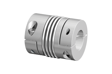 The metal bellows couplings from the 'AKN' series boast trusted quality and increased torsional stiffness. The reduced shafts in the element guarantee for high stiffness while at the same time compensating angular, axial and radial misalignments. The shaft connection is established by means of clamping hubs on both sides.