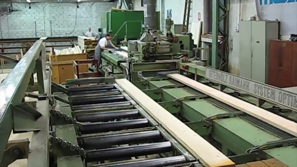 Prenova krmilnega sistema stroja. Stroj je večlistna žaga namenjena vzdolžnemu razrezovanju desk. Dva lista žage in prislon je mogoče pozicionirati. Stroj pri podajanju nove deske izmeri njeno širino in nato avtomatično nastavi take širine rezov, da je razrez deske optimalen. Optimizacijske kriterije je mogoče spreminjati. Stroj je mogoče upravljati tudi ročno. Spremljanje procesa razreza in nastavljanje parametrov je mogoče preko upravljalnega panela z ekranom občutljivim na dotik na industrijskem PC računalniku.