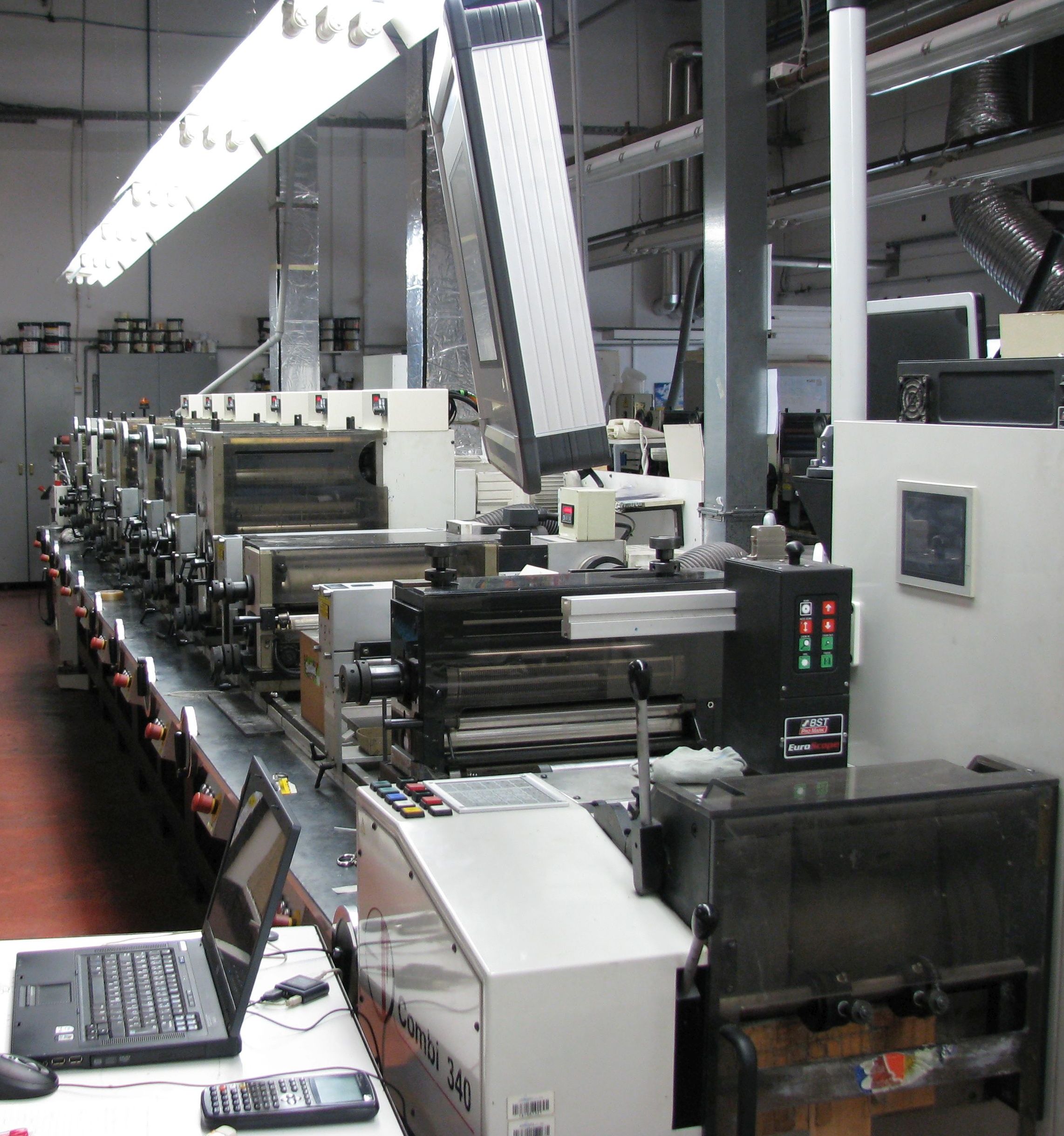 V prispevku je opisan projekt zamenjave krmilnega in pogonskega sistema stroja za velikoserijski večbarvni tisk samolepilnih etiket spremenljivih dolžin Etipol Combi 340. Mehanski pogon za doziranja barve na klišeje je bil nadomeščen z elektronskim. Stari krmilnik je bil nezanesljiv, proizvajalec stroja pa ni več omogočal servisiranja. Izziv pri izvedbi projekta je bila zahtevna tehnologija tiskanja, predvsem doseganje visoke ponovljivosti odtisov.